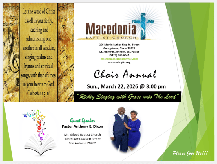 ~ M.B.C. Choir Annual: Sunday, March 22, 2026 @ 3pm