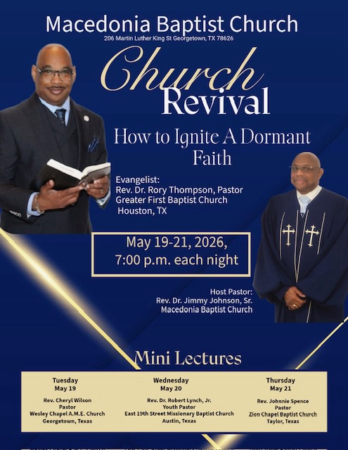 Wed.: Rev. Dr. Robert Lynch, Jr. (East 19th St. Missionary Baptist Church, Austin, TX.)